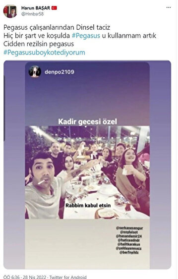Türkiye'de tüm Müslümanlar Kadir gecesini ibadet ile geçirirken Pegasus çalışanları alkol masasında Kadir gecesiyle dalga geçti. Sosyal medyada hızla yayılan paylaşıma tepkiler çığ gibiydi.