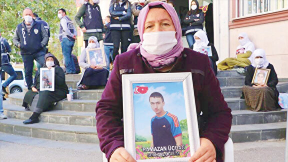 HDP Diyarbakır il binası önüne kurulan çadırda pandemi sebebiyle 30 kadar aile yer alıyordu. Kimi anne kucağında küçük çocuğuyla, kimi anne üzerinde kaçırılan evladının fotoğrafının yer aldığı tişörtüyle nöbetteydi. Ancak istisnasız hepsinin ellerinde çocuklarından kalan o son kare fotoğraf vardı. Evlatlarının seneler sonraki halini bilmeselerde kaçırıldığı tarihteki fotoğrafıyla sesleniyor, hikayelerini o fotoğrafla anlatıyorlardı. Aradan geçen yıllar onların çocuklarını büyütmemişti. Tıpkı evladı ölen anneler gibi onlar da, çocuklarının dağa kaçırıldığı o küçük yaşlarında donup kalmışlardı. Terör örgütü PKK’nın özellikle 2015 yılında ağırlık verdiği kandırma ve kaçırma olaylarında ergenliğe yeni adım atmış çocukları tercih ettiği görülüyordu. Ortalama olarak 14-15 yaşında kandırılan çocukların içlerinde piknik yaparken kaçırılanlar da vardı, futbol maçı yapma bahanesiyle götürülenler de. Dini eğitim alması için yolladığı medreseden kandırılarak götürülen Mevlüde Üçdağ’ın oğlu Ramazan, hafızlığa başlamış ve Kur’an’ın 7 cüzünü ezberlemiş bir çocuktu. Oğlunun okuduğu Kur’an-ı Kerim’i saklayıp gözyaşları içinde öpen Mevlüde Anne, yaşadığı özlemi “evladım yokken dünya benim olsa ne olur” diyerek ifade ediyordu. Oğlunun Türk bayrağıyla süslenmiş yatağına kimseleri yatırmıyor, döneceğine olan inancıyla yatağını her gün severek düzeltiyordu.