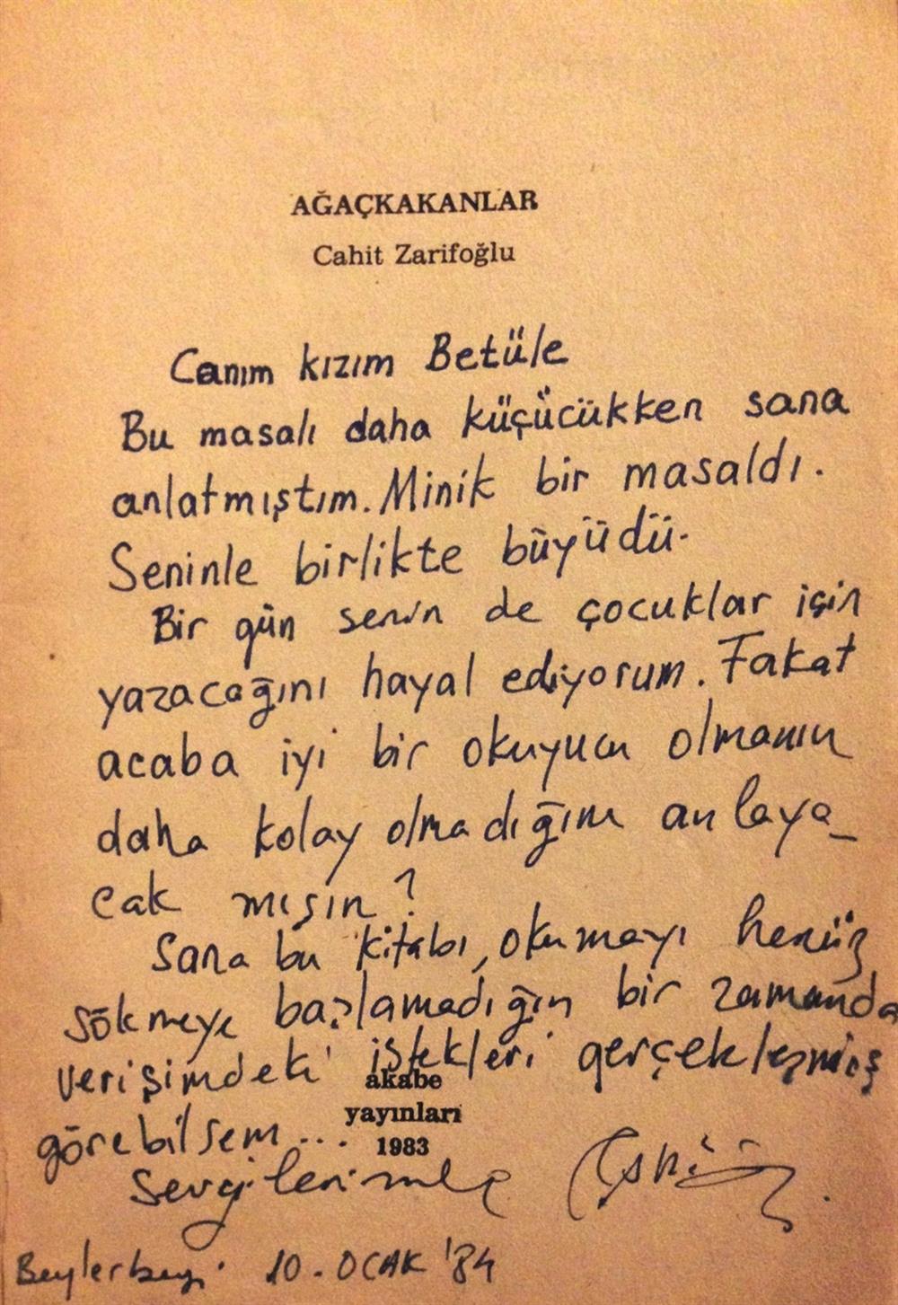 Cahit Zarifoğlu›nun kızı, yazar Betül Zarifoğlu, TRT İstanbul Radyosu›nun bu projesiyle ilgili «Orada babamla ilgili bir şey yapılması çok güzel. Nasıl bir şey olacak ben de merakla bekliyorum. Güzel niyetlerle yapıldığı belli. Şu zamandan sonra yapılması şık olur bizim açımızdan da. Babamın önce şiirleri, sonra yazıları sonra da çocuk kitapları geliyor. Radyo tiyatrosu gibi diğer alanlarda verdiği eserler doğal olarak şairliğinin ve yazarlığının yanında geri planda kalıyor. Bir yönüyle orada daha çok eser verdiği için ön plana çıktı. Bu da doğal geliyor bana» yorumunu yapıyor. Babasının kendisine çocukken kitapları imzalayarak verdiğini ifade eden Zarifoğlu, «Genelde çok kısa yazardı. Bir keresinde ‹Bir gün senin de çocuklar için yazacağını hayal ediyorum› diye yazmıştı. Bir Kur›an-ı Kerim›i de ‹Ömrü boyunca rehber edinmesi dileklerimle› diye yazıp vermişti» diyor.
