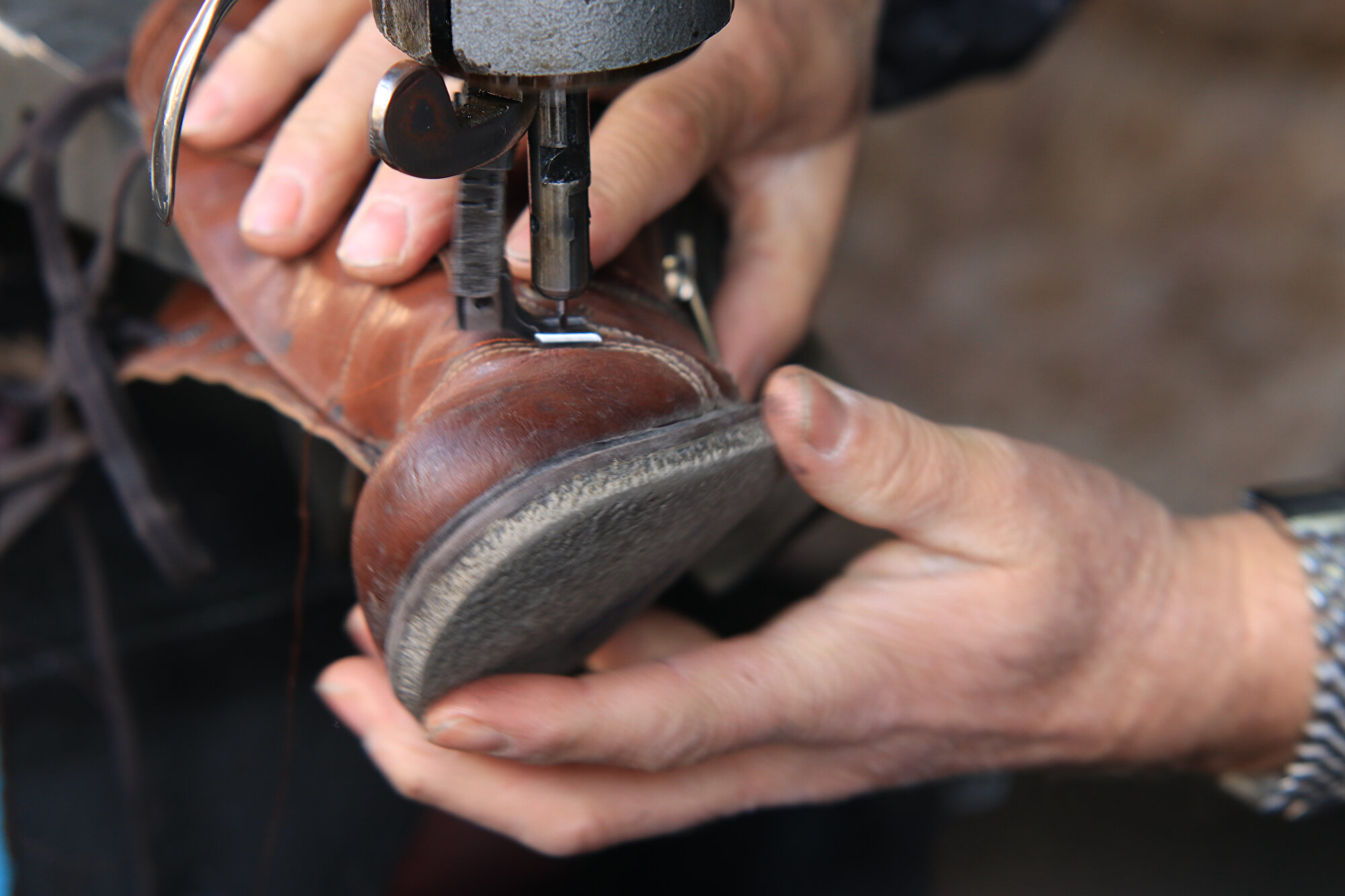 "Burası ana cadde üzeri. Metrekaresine göre kirası biraz pahalı gelebilir ama benim bundan şikayetim yok. Şimdi burada başka biri olsa çalışamaz. Benim dikiş dikerken, ayakkabı tabanı dikerken, yapıştırırken belli bir duruşum var. Başkası olsa yapamaz. Neyin nerede olduğunu ben bilirim. Bu dükkan çarşının tam merkezinde. Daha ucuz bir dükkan bulsam ara sokak olsa bu kez de akşama kadar iş yapamam, belki de kirayı bile ödeyemem. Bu dükkanda ise gece 12'ye kadar da dursam iş olur. Mekan ufak ama gönlümde çok büyük."