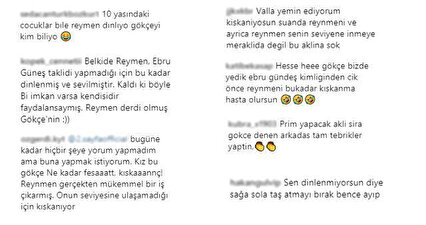 Gökçe Kırgız'a bir tepki de Reynmen'in hayranlarından geldi. Açıklamalarından sonra yorum yağmuruna tutulan şarkıcı adeta linç edildi. Gökçe Kırgız hakkında 'Reynmen'in seviyesine ulaşamadığı için kıskanıyor', 'Prim yapıyorsun' ve 'Kıskanıyorsun' gibi yorumlar yapıldı.