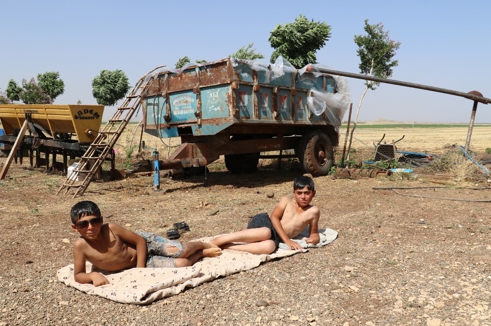 10 yaşındaki Kahraman ve 12 yaşındaki Nihat Kaçmaz, havaların çok sıcak olduğunu, havuza gitmek gibi bir imkanları olmadığını dile getirerek, “Her yıl babamız römorka su doldurarak bize havuz yapıyor. Yüzüyoruz. Çok mutlu oluyoruz” diye konuştular.