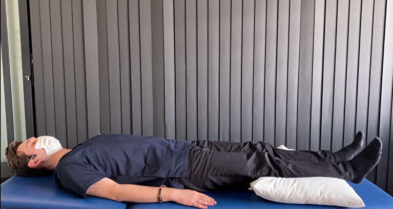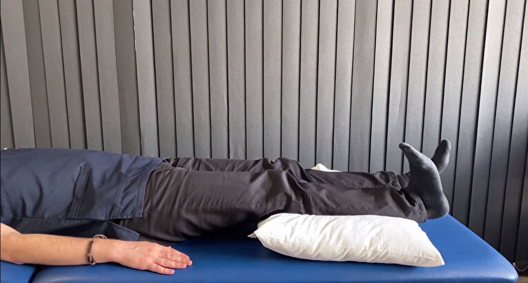 "Kişi yatağın üzerinde sırt üzeri uzanırken dizin ve baldırın altında bir yastık bulunuyor. Yani topuklarımız ile yatak arasında bir mesafe oluşturmuş oluyoruz. Bu pozisyonda ayak bileği ve parmaklarımızı vücudumuza doğru çekiyoruz 3’e kadar sayıp tekrar aşağıya doğru uzatıyoruz. Bu hareketi iki ayağımızın içinde belirli tekrarlar ile yapıyoruz. Bu egzersizdeki en önemli amacımız hem kasları çalıştırıyoruz hem de bir kas pompası olan baldır kaslarımızı da aktif kullanarak dolaşımın olumlu etkilenmesini sağlıyoruz.