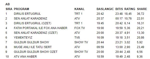 İşte 18 Nisan Çarşamba reyting sonuçları...