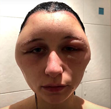 Genç kız, hastaneye geldiğinde başının çevresi 56'dan 63 santime ulaşmıştı. Hastanede ilaç verilen ve eve gönderilen kadının alerjisi daha da gelişti, dili şişti ve boğulmaya başladı. Öğrencinin durumu ancak hastaneye yatırıldıktan sonra düzelmeye başladı.