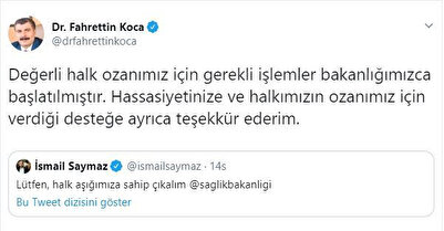 Kısa sürede ilgi gören ve hızla paylaşılan mesaja Sağlık Bakanı Fahrettin Koca da destek verdi.