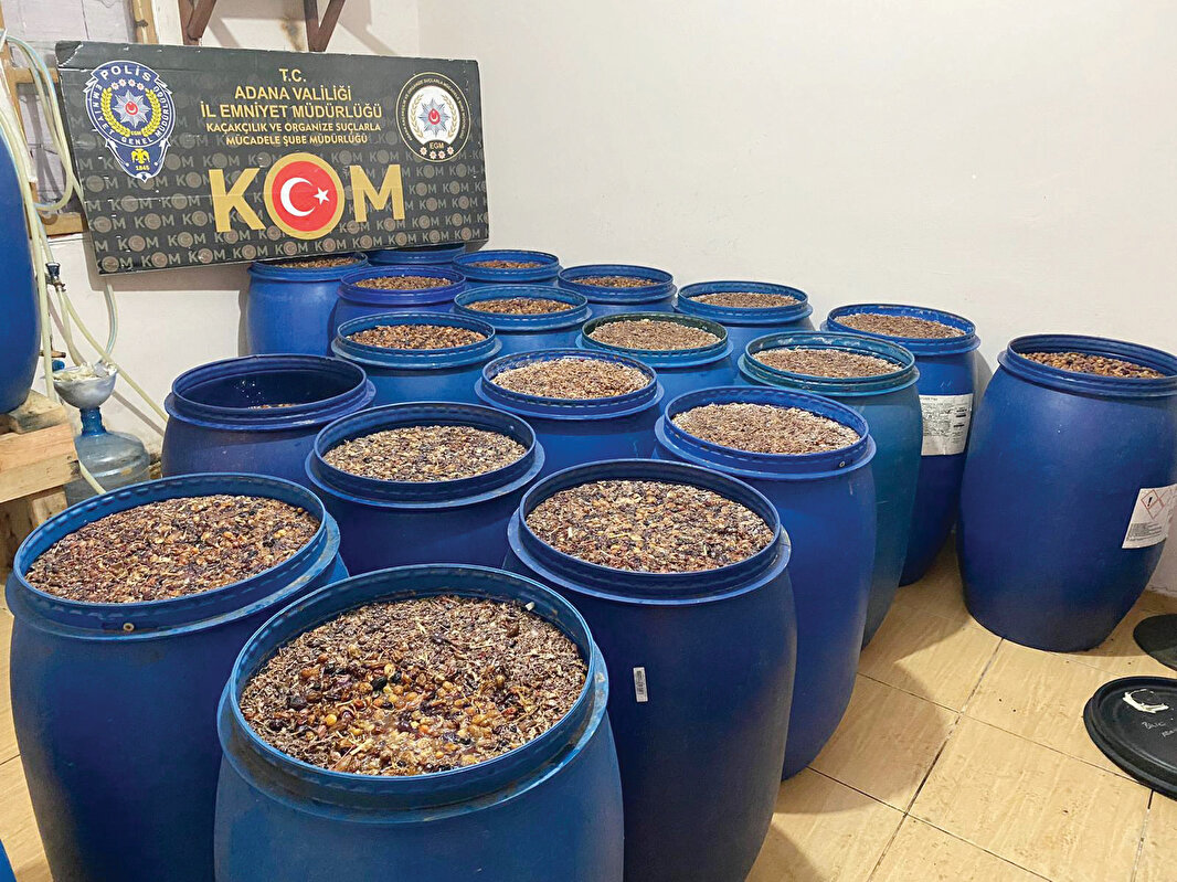 Adana’da 9 bin 467 litre, Malatya’da 4 bin 173 litre, Edirne, Kırklareli ve Tekirdağ’daki baskınlarda 1400 litre, Bursa’da da 400 litre sahte içki, Mersin’de ise 1,5 ayda 5 bin 379 litre etil alkol ele geçirildi.