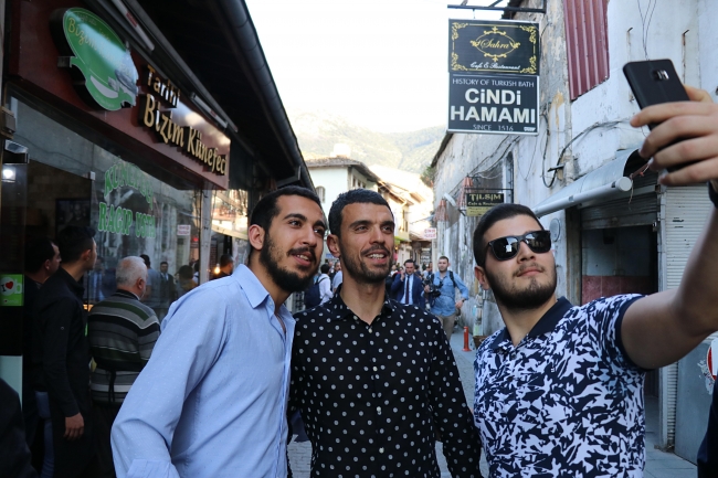 Çay bahçesi etrafında hayranlarının ilgisiyle karşılanan ünlü isimler, vatandaşlarla hatıra fotoğrafı çektirdi.