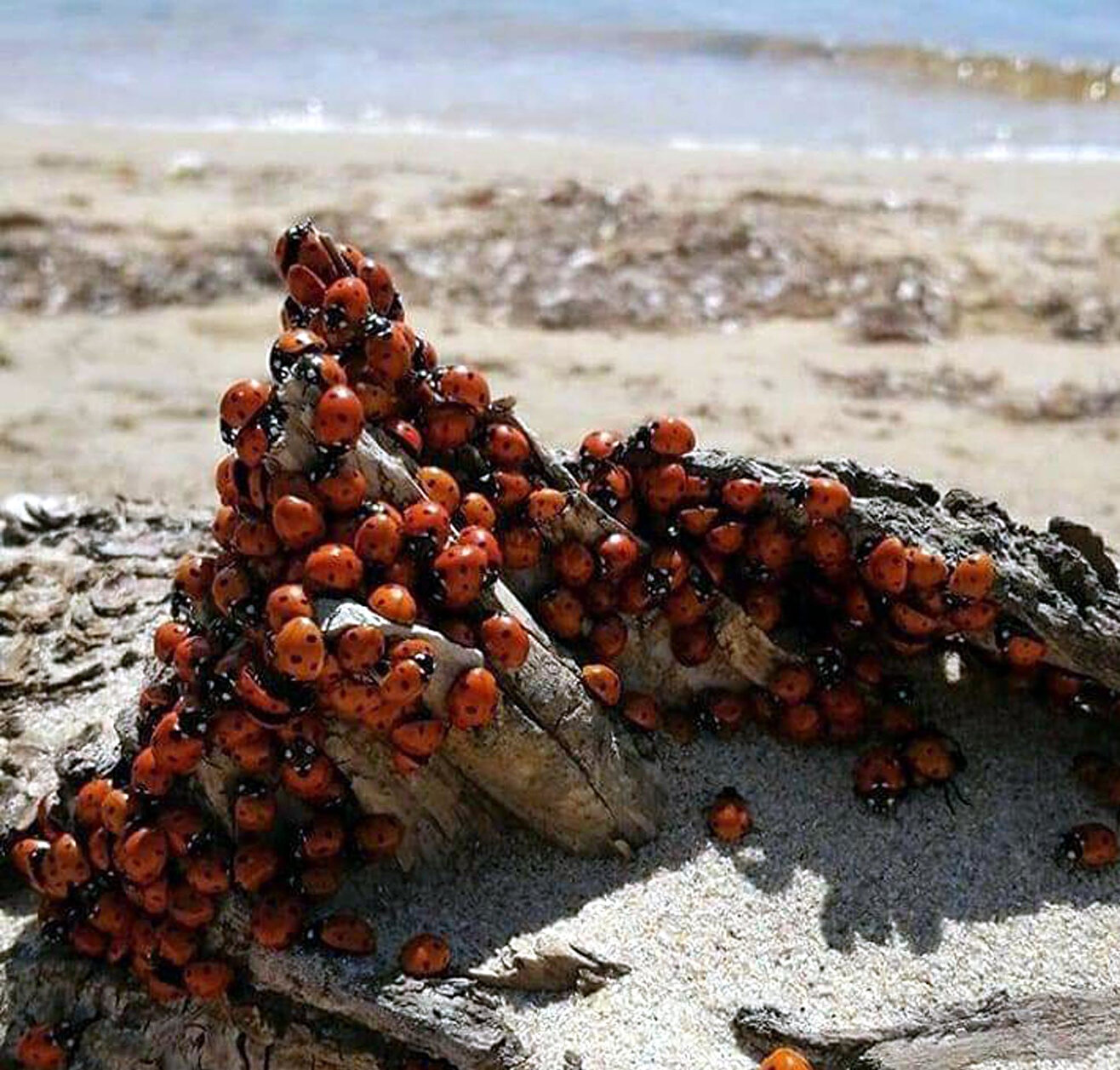 Yaklaşık bir haftadır uğur böceği istilası yaşıyoruz. Sahilleri sardılar evimizin balkonları ve dış cephelerini sardılar. Evden çıkamıyoruz. Sabah bulut gibi geldiler, çok kötü ısırıyorlar, seviyoruz ama ısırmasınlar. Geçen yıl ve önceki yıllarda da geldiler ama bu sene uzun ve çok yoğun geldiler. Bir an önce gitmelerini bekliyoruz