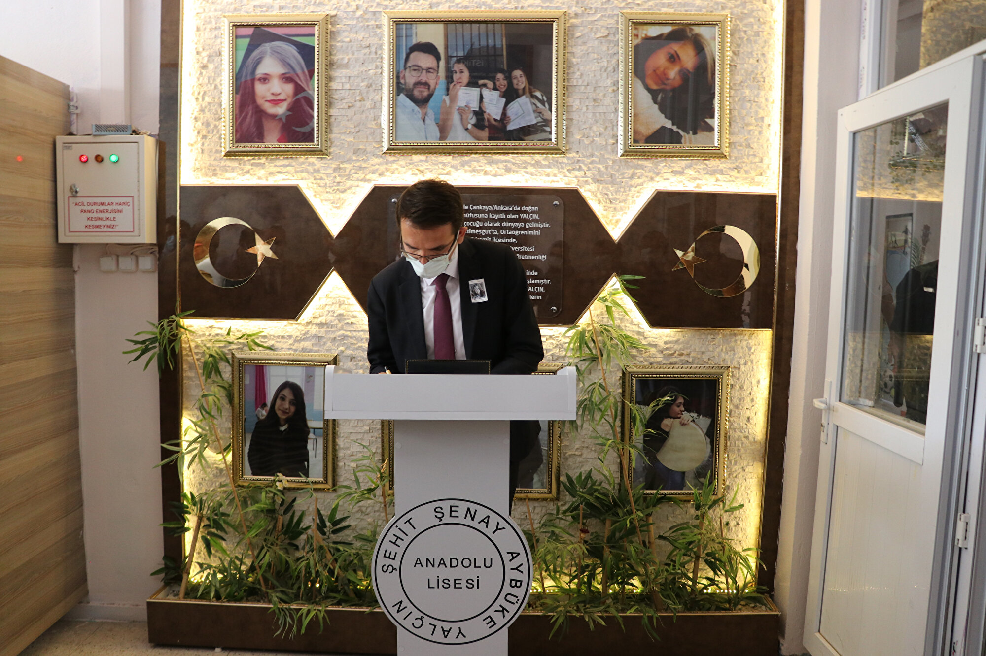Programda konuşan Kaymakam Ayhan Akpay, “Aybüke öğretmenimiz öğrencilerine karnesini dağıttığı en mutlu gününde hain terör örgütünün saldırısı sonucu şehit olmuş.