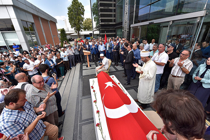 Çalışma arkadaşımız Cambaz'ın cenazesi, Topkapı Albayrak Holding binasına getirildi, mesai arkadaşlarından helallik alındı. Merkez binasında gerçekleştirilen törene Albayrak Holding Yönetim Kurulu Başkanı Ahmet Albayrak, İcra Kurulu Başkanı Mustafa Albayrak, Albayrak Holding Yönetim Kurulu Üyeleri Nuri, Muzaffer ve Kazım Albayrak, Albayrak Grubu Üst Yöneticisi Ömer Bolat katıldı. Ayrıca Yeni Şafak Genel Yayın Yönetmeni İbrahim Karagül, yazarlarımızdan Salih Tuna, Mehmet Şeker, Ayşe Böbürler, Fatma Barbarosoğlu, Özlem Albayrak, Yeni Şafak eski Genel Yayın Yönetmeni ve Karar Gazetesi yazarı Mustafa Karaalioğlu da bulundu. Anadolu Ajansı Genel Müdür Yardımcısı Metin Mutanoğlu, Star Gazetesi yazarı Halime Kökçe, Habertürk TV Genel Müdürü Veyis Ateş de törende bulunan isimler arasındaydı.