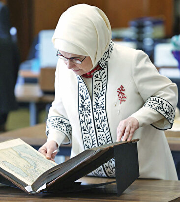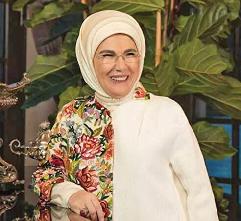 Sık sık sürdürülebilir tasarımlarla karşımıza çıkan Emine Erdoğan, eski ürünleri de yeniden değerlendirmek konusunda oldukça hassas. Örneğin kendisine hediye edilen bir şalı, kullanmadığını fark edince onu farklı bir kumaşla birleştirerek yeniden tasarlamış. Bu ceketi ise hem bir röportajında hem de 2018’de Arjantin’de yapılan G-20 zirvesinde giyinmiş. Aynı şekilde geçmiş yıllarda bir çekim için giydiği geleneksel mercan baskısı şeritleri olan ceketini bir başka gün 24 Mart 2022 tarihinde Brüksel’de Belçika Kraliyet Kütüphanesi’ni ziyaretinde kırmızı doğal taşlardan dizilmiş bir kolye ve mercan figüründe bir broş ile yeniden giyinmişti.