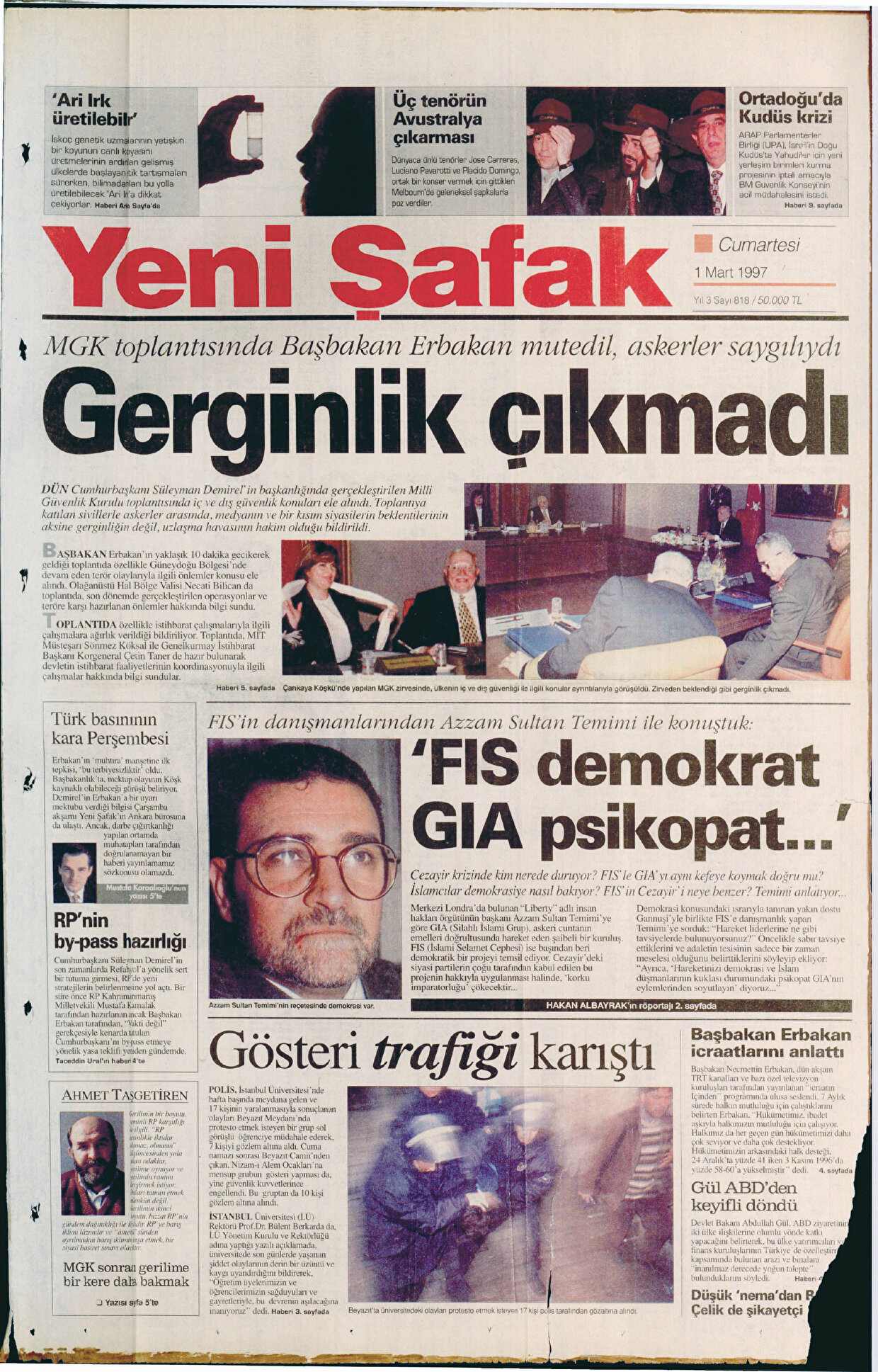 - MGK toplantısının yol açtığı krizi aşağıya çekmek isteyen Başbakan Erbakan, hükümetle ordu arasında oluşturulan diyalogla çözümü arzuladı. Başbakan Erbakan’ın mart aylarında ki o gerginliği indirmek için yaptığı diyalogların detayları ‘Kriz Trafiği’ başlığı ile Yeni Şafak’ta okurlara duyuruldu.