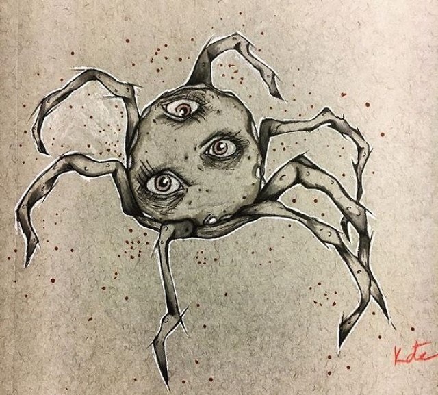 Kate gördüğü imgeleri çizimlerine yansıtıyor. Söylediğine göre gördüklerini çizmek onu hastalığıyla mücadele etmede yardımcı oluyor.