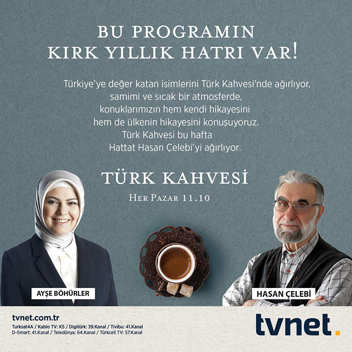 Günümüzün hattatların reisi yani Reis-ül Hattatin kabul edilen Hasan Çelebi, TVNET ekranlarında yayınlanan Türk Kahvesi'nin bu haftaki konuğu.