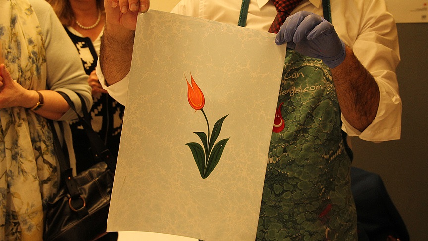 Ebru sanatçısı Atilla Can ise Türkiye'nin en çok sığınmacı barındıran ülke olduğunu vurgulayarak, şunları kaydetti: