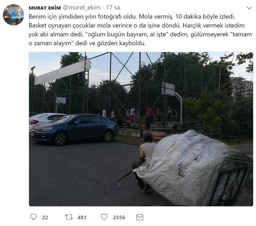 Ümraniye'de Atakent mahallesinde basketbol oynayan çocukları izleyen kağıtçı genç, sosyal medya kullanıcı Murat Ekim'i duygulandırdı. Ekim, gencin fotoğrafını sosyal medya hesabından paylaşarak, "Türkiye Basketbol Federasyonu bu kardeşimize ulaşmak istiyor. Fotoğrafını ekledim" diyerek vatandaşlardan genci bulmaları için yardım istedi.