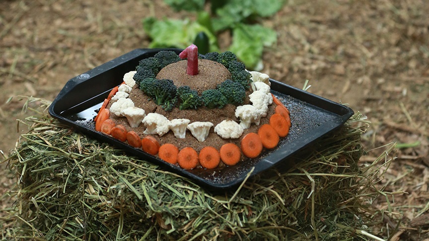 Kafesine sevdiği besinlerden diyetine uygun hazırlanan kuru mama, havuç, brokoli ve karnabahardan oluşan pasta konulan Mela, daha sonra annesiyle alana alınarak aralarında sık verilmeyen meyvelerin de olduğu yiyeceklerle buluşturuldu.