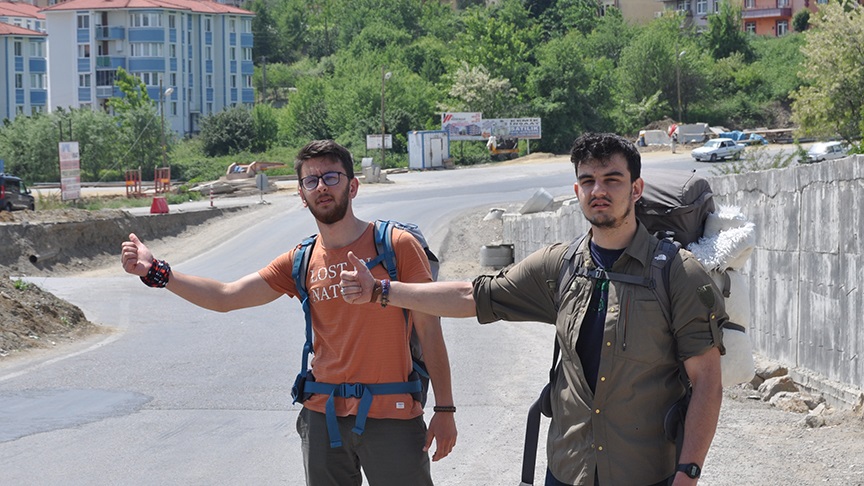 Kocaeli Üniversitesi'nde okuyan ve boş zamanlarında Türkiye'yi otostopla gezen iki arkadaş, aynı şekilde dünya turuna çıkmayı hedefliyor. Sosyal medya üzerinden tanışan ve bugüne kadar otostopla 28 ili gezen üniversite öğrencileri Berati Genç ve Halil Kocakır, yeni turları kapsamında 1 Mayıs'ta Kocaeli'den başladıkları yolculukta Bartın'a ulaştı.