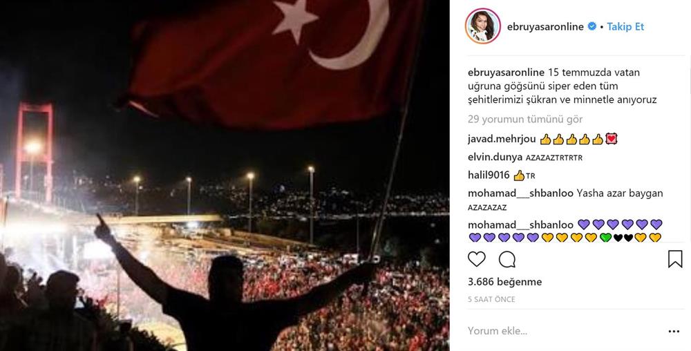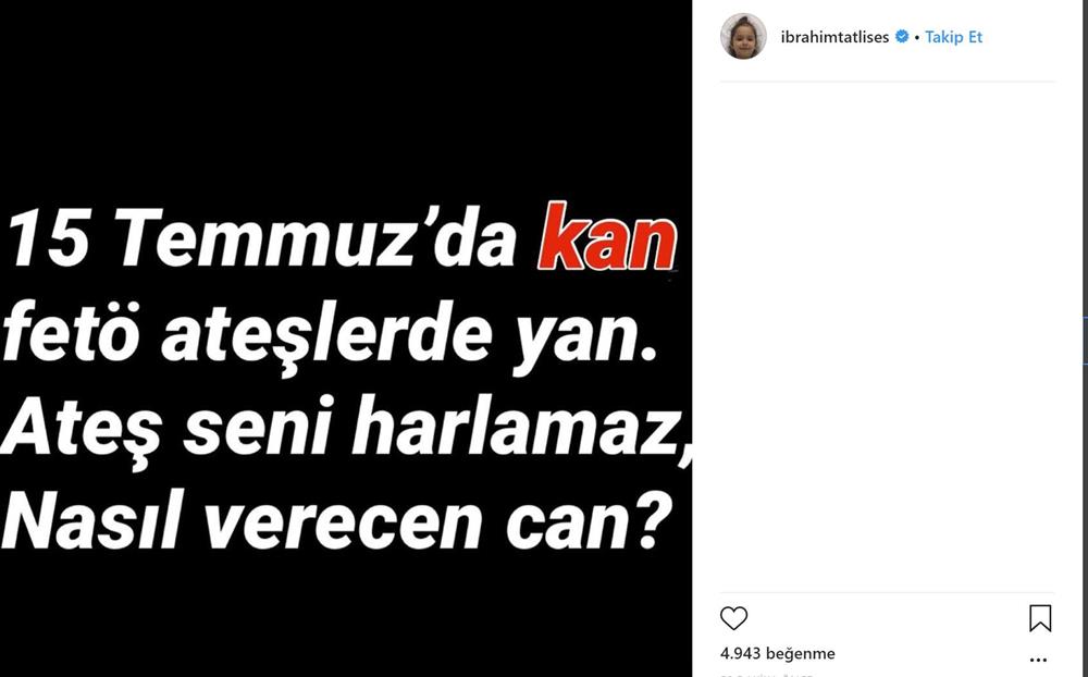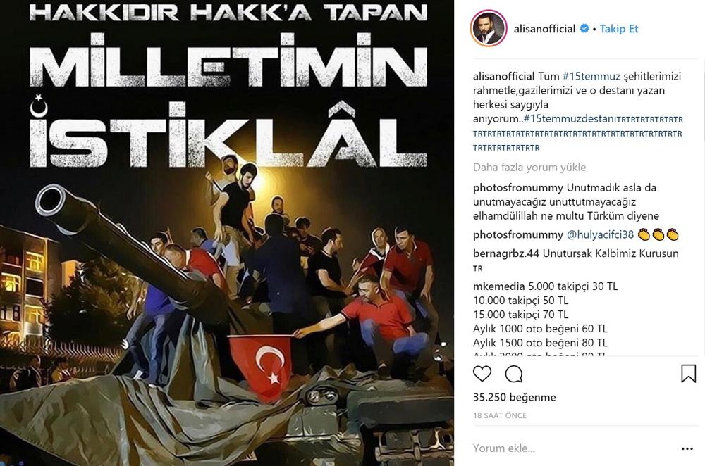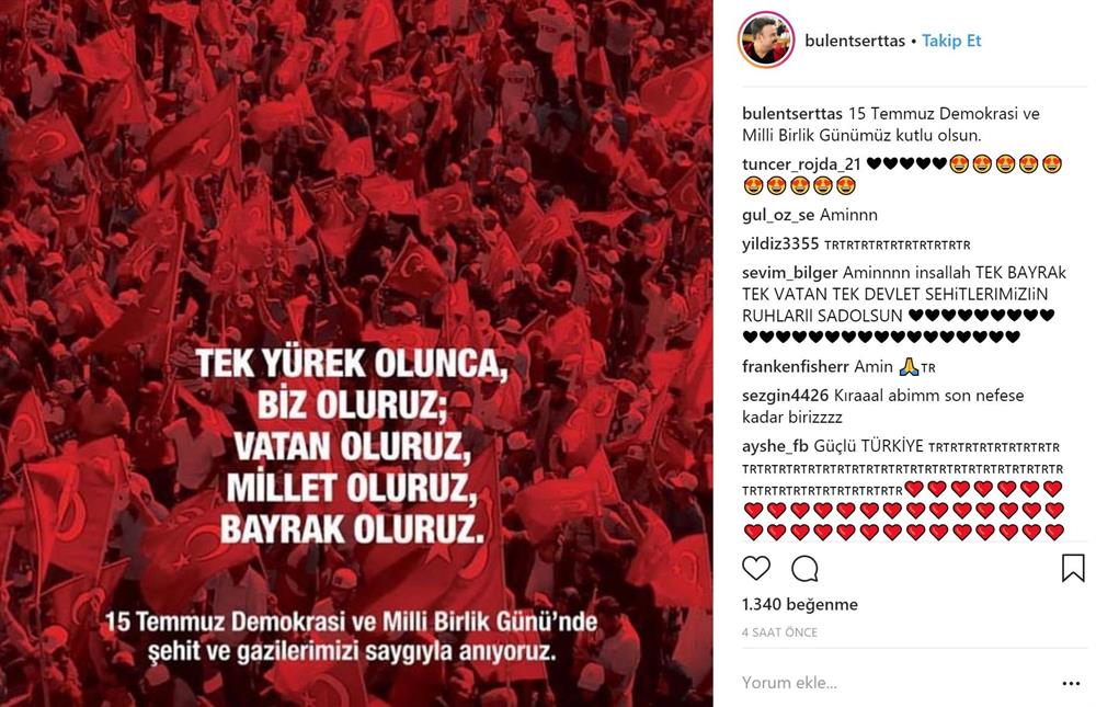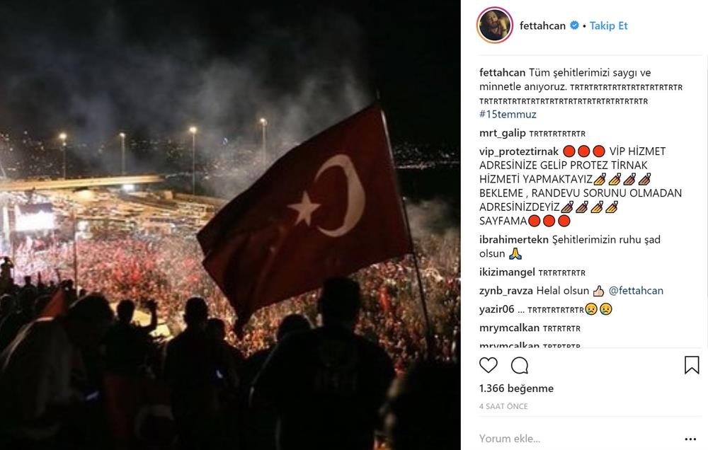 FETÖ terör örgütünün 15 Temmuz 2016’da başarısızlıkla sonuçlanan darbe girişiminin ardından iki yıl geçti. Ülke genelinde 15 Temmuz şehitlerini anma törenleri düzenlenirken, ünlülerde kanlı darbe girişiminin yıl dönümünde tepkilerini sosyal medya hesaplarından dile getirdi.