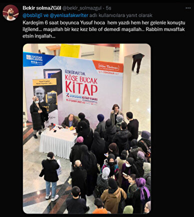 - Kişi kapasitesi 750 olan salonun tamamı Yusuf Kaplan'ın söyleşisi sırasında doldu ve katılımcıların bir kısmı ayakta kaldı. Ardından gerçekleşen kitap imzalama etkinliğinde ise benzerine az rastlanacak bir olay yaşandı.Fuar kapılarını kapattı ancak imza sırası bitmediği için Yusuf Kaplan saatlerce kitap imzalamaya devam etti.