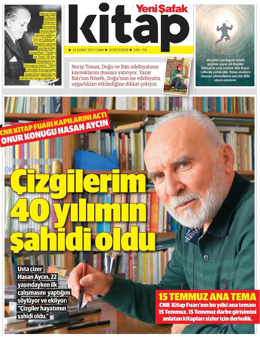 Eserleri yurt içi ve yurt dışında ilgiyle takip edilen Hasan Aycın, ilk bakışta kendini belli eden çizgilerin sahibi, özgün bir çizer. 4. Uluslararası CNR Kitap Fuarı'nın onur yazarı seçilen Usta çizer, 40 yılın verdiği birikim ve olgunlukla üretmeye devam ediyor. Aycın, ilk kitabı “Bocurgat"ı inceleyen Finlandiyalı gazetecinin yaptığı röportaj ve ülkesine döndüğünde karşılaştığı sansür olayına değinerek çizgilerinin hayatına şahitlik ettiğini söylüyor. Birçok dergi ve gazetede eserleri yayınlanan Aycın'ın otobiyografik eseri Müşahedat'ın yanı sıra kadim metinleri yeniden yorumladığı Sâhipkırân, Bin Hüseyin, Esrarnâme adlı düzyazı eserleri de bulunuyor. Usta çizer Hasan Aycın, kitaplar, devlet sanatçılığı, ödüller, çizgiler ve Hanzala'yı Yeni Şafak Kitap için anlattı.