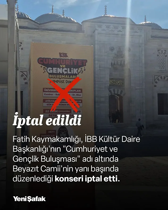 Fatih Kaymakamlığı, CHP'li İBB'nin caminin yanı başında düzenlediği gençlik konserini halkın tepkisi sonrası iptal etti.