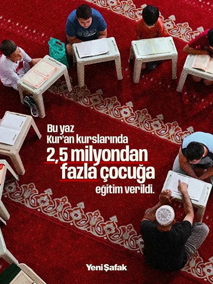 2025 yılında Diyanet İşleri Başkanlığı tarafından açılan 117 bin 238 derslikte 2 milyon 540 bin 557 çocuğa yaz Kur'an kursu hizmeti sunuldu. Bu kapsamda 2024-2025 eğitim öğretim yılında 780 bin 28 öğrenciye Kur'an-ı Kerim, manevi değerler ve dini eğitim verildi.