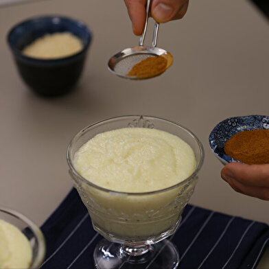 Servis kaselerine paylaştırın. Toz tarçın serpip üzerilerine toz fındık yayın ve buzdolabında dinlendirdikten sonra servis edin.
