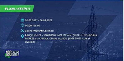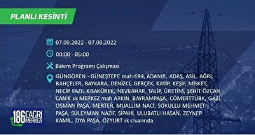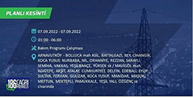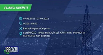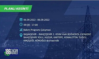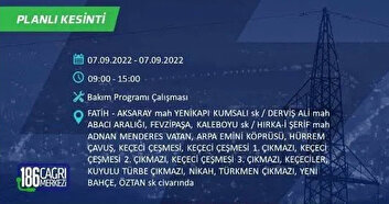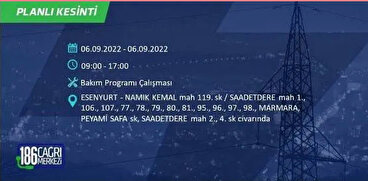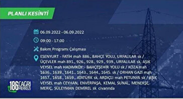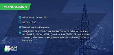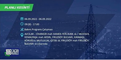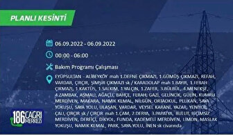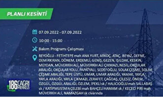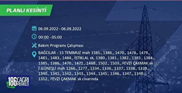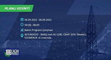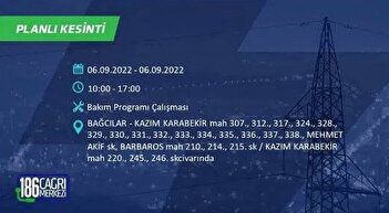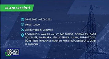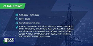 6 Eylül 2022 Salı günü yaşanacak ilçeler