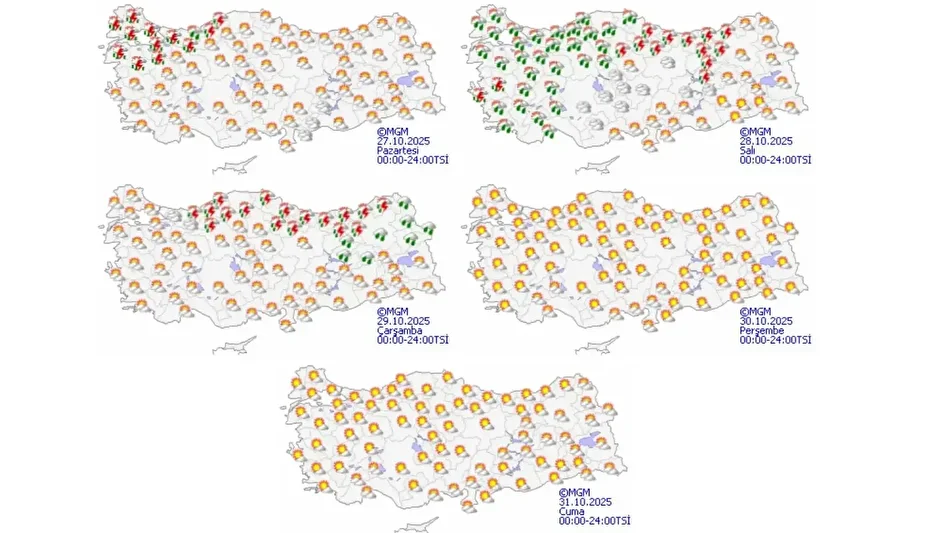 AKOM'dan yapılan açıklamaya göre, son meteorolojik değerlendirmeler kapsamında, hafta sonu ılık ve parçalı bulutlu seyreden havanın pazartesiden itibaren yerini kuvvetli sağanak ve fırtınaya bırakması öngörülüyor.