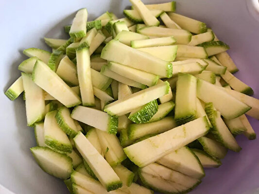 - 2.Kabakları soyup küp küp ve küçük doğrayın.