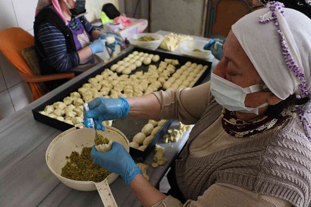 - Kopardığınız parçayı içli köfte yapar gibi parmağınızla oyuz, iç kısmını ceviz ile doldurup kapatın.