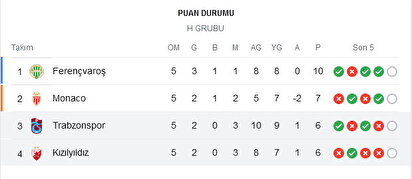UEFA AVRUPA LİGİ H GRUBU PUAN DURUMU
