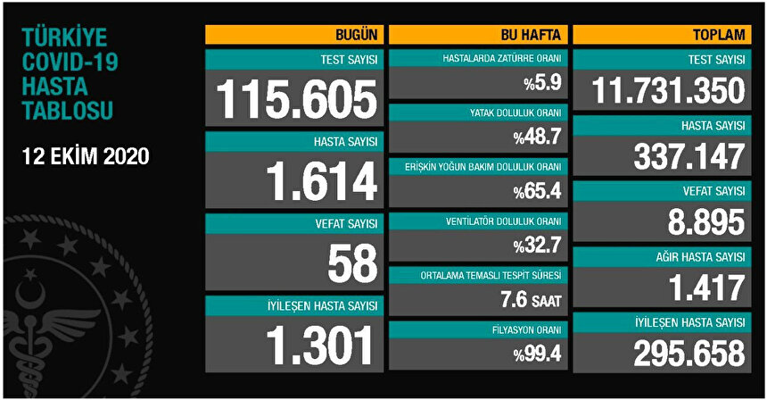 Koronavirüs Bilgilendirme Sayfası'na 14 Ekim koronavirüs tablosu açıklandı. Sağlık Bakanı Koca, bugünün tablosuna ilişkin Twitter hesabından paylaşımda bulundu. İşte 14 Ekim koronavirüs ölü, hasta, iyileşen sayısı...