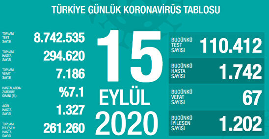 Türkiye'nin 16 Eylül koronavirüs (Kovid-19) tablosu