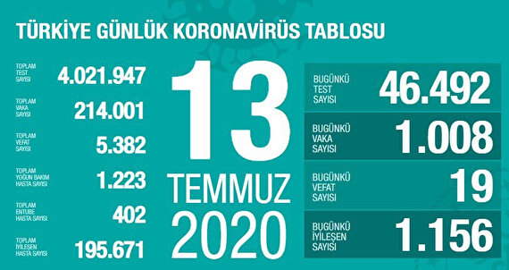 - Bakan Koca, verileri açıkaldığı paylaşımında "Daha çok test, daha çok vaka saptar. Test sayısıyla yeni vaka sayısı arasındaki ilişki ise bire bir değildir. 15 Haziranda 1.592 vaka sayısına ulaştığımız gün de test sayımız 42.000 idi. Test sayısı ihtiyaca göre değişmektedir. Sonucu belirleyen tedbirdir" ifadelerini kullandı.