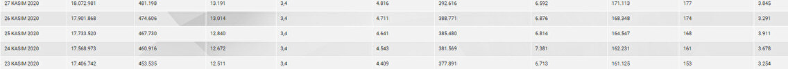 Tabloya göre son 24 saatte 182 kişi korona virüsten hayatını kaybetti, toplam can kaybı 13 bin 373’e yükseldi. Bugün toplam 174 bin 443 test yapılırken, 30 bin 103 yeni vaka sayısı, 6 bin 714 kişinin de hastaneye yatan vaka oldu. Toplam vaka sayısının 487 bin 912 olduğu, bugün iyileşen 3 bin 611 kişiyle birlikte toplam iyileşen hasta sayısının 396 bin 227’Ye yükseldiği, toplam hastalarda zatürre oranının yüzde 3,4, toplam ağır hasta sayısının ise 4 bin 903 olduğu açıklandı.