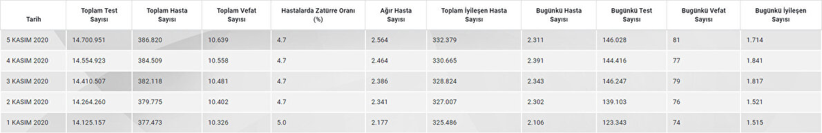 Bugünün koronavirüs bilgileri Sağlık Bakanlığının sitesine yüklendi. Sitede yer alan