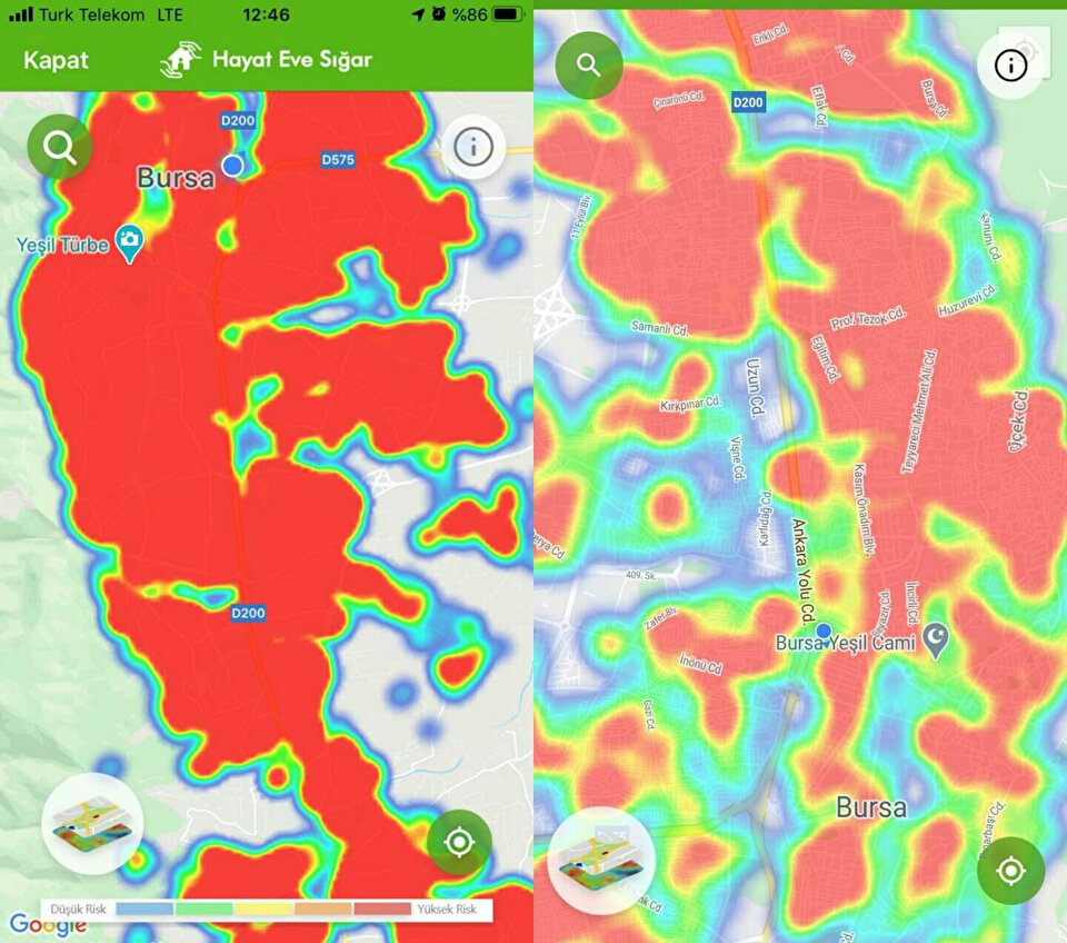 Bursa’da koronavirüs vakaları, son 3 ayda arttı. Vaka sayısındaki artış, HES uygulamasına da yansıdı. Uygulamadan 3 ay önce alınan risk haritası görüntüleri ile kasımın risk haritası görüntüleri arasında büyük fark olduğu görüldü. Kentin 3 ayda bütün ilçeleri kırmızıya boyanırken, özellikle denize kıyısı bulunan Mudanya ve Gemlik’teki artış dikkati çekti.