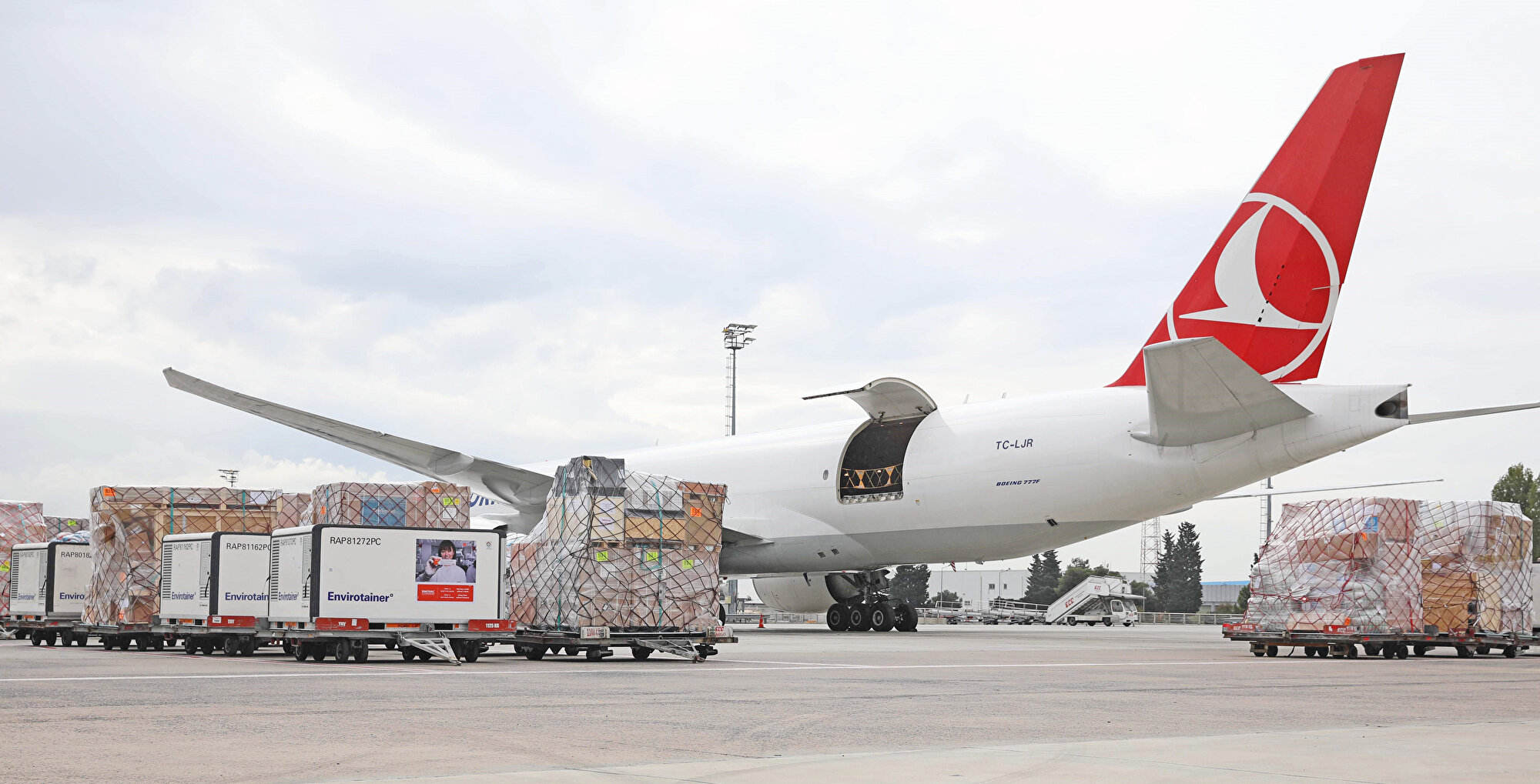Dünyanın dört bir yanına yük taşıyan Türk Hava Yollarının (THY) kargo markası Turkish Cargo; güçlü filosu, geniş uçuş ağı ve özel kargo hizmet kalitesiyle Kovid-19 aşılarını taşımaya başladı.