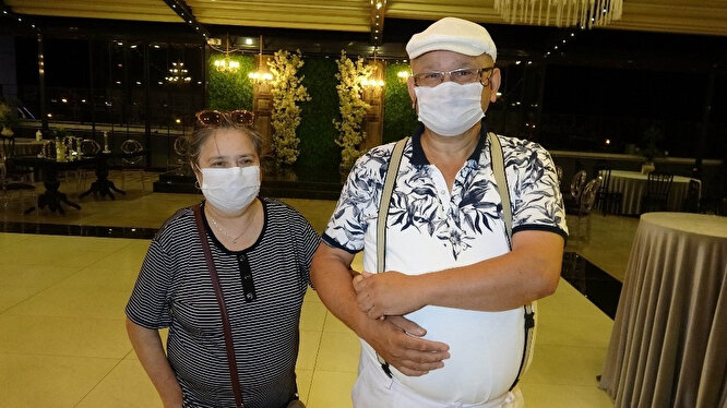 Samsun’da Samet-Ebru Atsan çiftinin düğün töreni korona virüs tedbirleri kapsamında bir düğün salonunda yapıldı. Gelinin akrabası olan şeker ve tansiyon hastası Nermin Yücebaş (56) ve Altan Yücebaş (58) çifti, takı taktıktan sonra ilginç bir yaklaşım sergileyerek korona virüse karşı farkındalık oluşturdu.