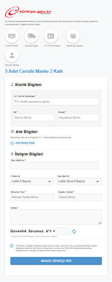 - - Aile üyelerine de maske istenirse onların da TC kimlik numaraları, ad ve soyad bilgiler girilecek.