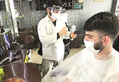 - Berberin 51 gün sonraki ilk müşteri ise yine berber oldu. Berber çalışanı İbrahim Aksu, iş yeri sahibi İsa Keskin tarafından saç ve sakal tıraşı edildi. Ardından müşterilere geçildi. Tıraşa başlanmadan önce eller dezenfekte edildi, sonra ağız maskesi ile yüz siperliğini takıldı. Eski tıraş örtüleri yerine tek kullanımlık naylon önlükler kullanıldı. Ardından tıraş başladı. Saç kesimi yapıldıktan sonra sakallar da yeni düzenleme gereği jiletle değil sadece makine ile kısaltıldı.