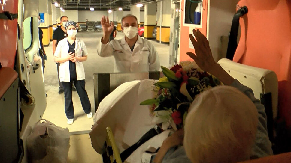 Yıllarca hastanelerde görev yapan Fatma B., sağlık çalışanlarının kendisini çiçeklerle uğurlaması üzerine duygulandı. Sağlık çalışanlarına teşekkür eden Fatma B., "Şuan nasıl duyguluyum. Sanki yeniden doğmuş gibiyim. Çok iyi insanlarsınız. Çok vicdanlı insanlarsınız. Her şeyim, bütün sevgilerim sizlerle olsun" dedi. Fatma B., "Bütün hemşirelerimizden doktorlarımızdan çok memnunum. Onlara minnetim sonsuz. Şuan kendimi iyi hissediyorum. İnşallah her şey güzel gider. Çok mutluyum" ifadelerini kullandı.