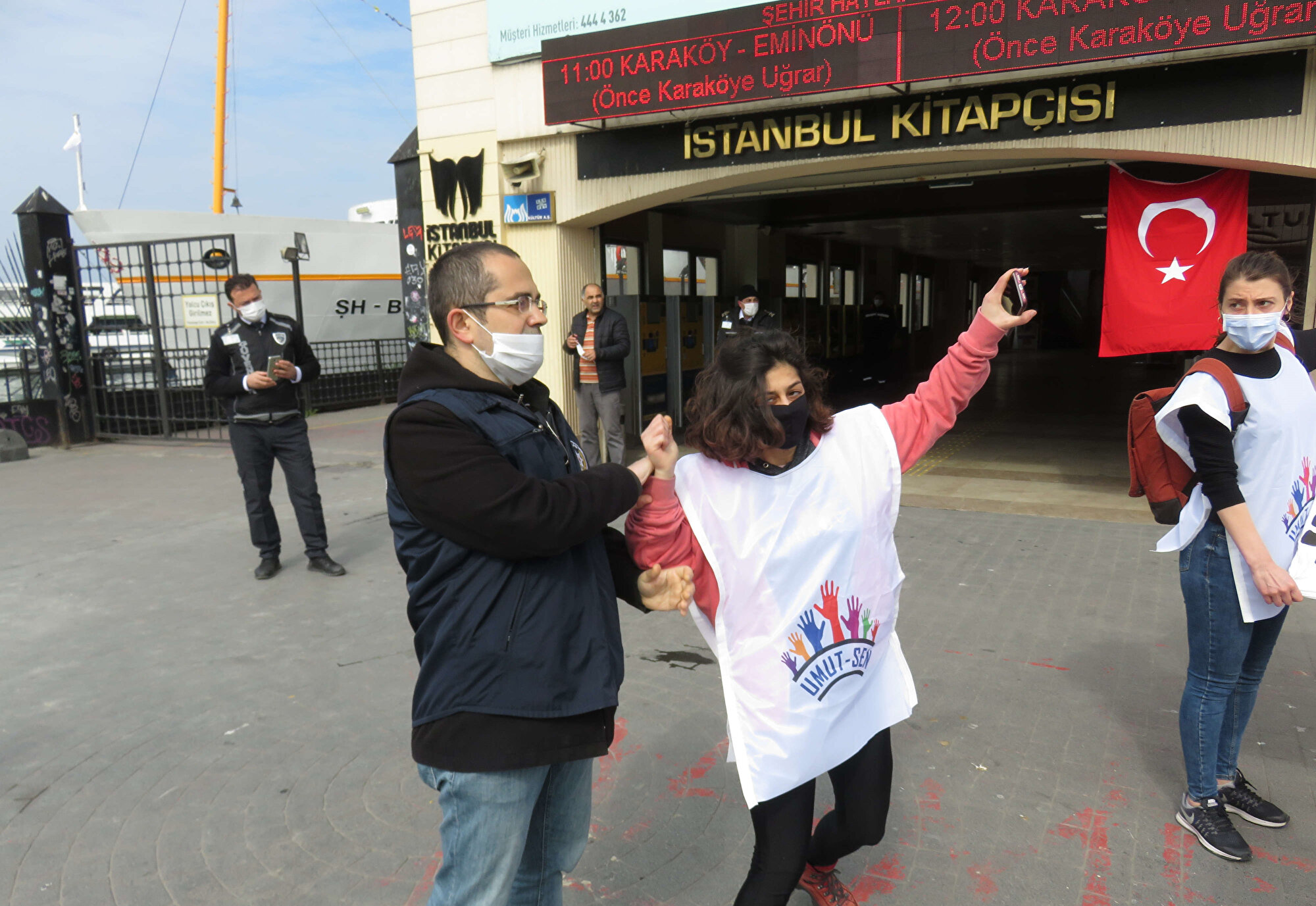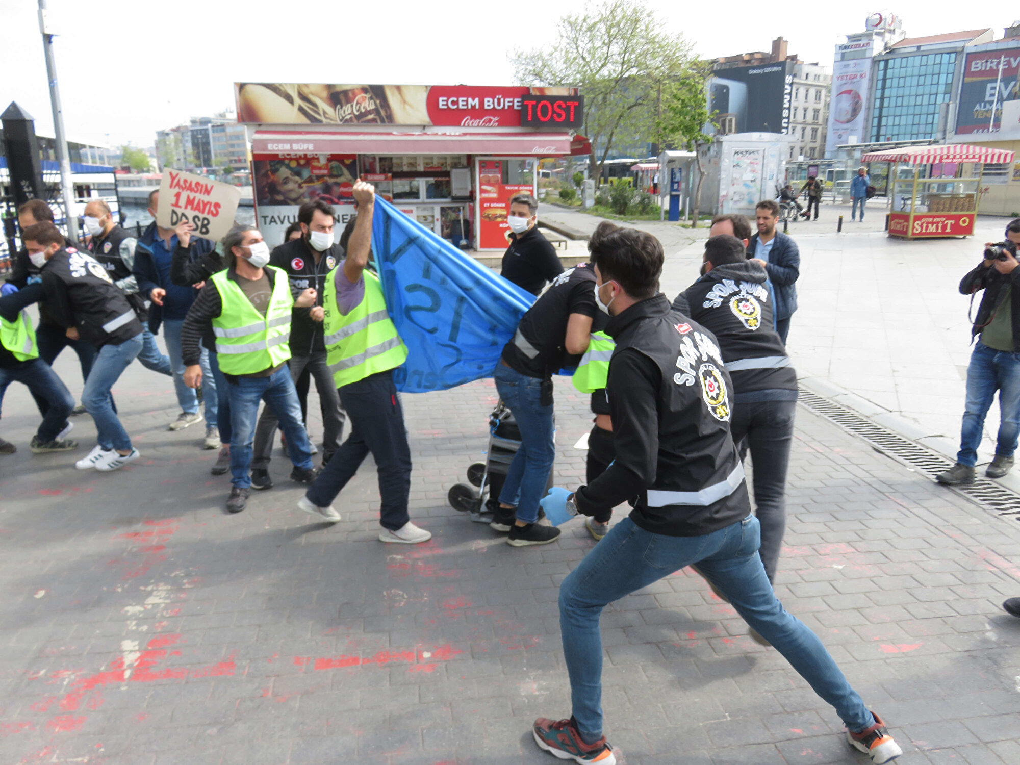 Koronavirüs tedbirleri kapsamında İçişleri Bakanlığı'nın talimatıyla 3 günlük sokağa çıkma yasağı olmasına rağmen, bir grup 1 Mayıs için İstanbul Kadıköy İskele Meydanı'nda bir araya geldi. Polis ekipleri, slogan atarak yürümeye başlayan gruba dağılmaları yönünde uyarıda bulundu.