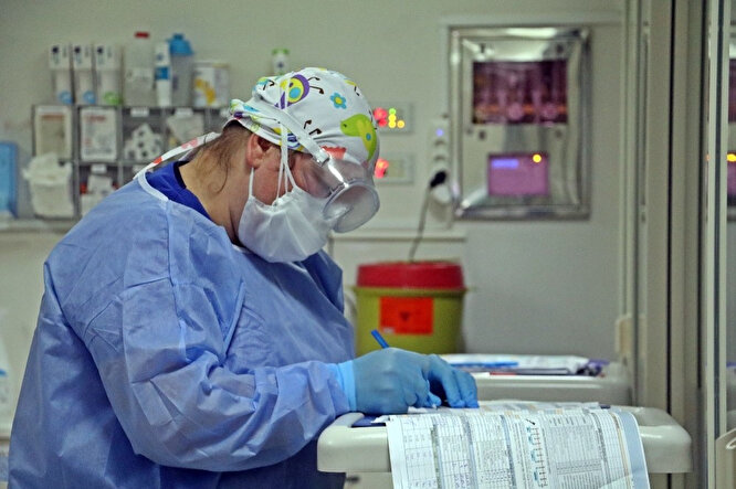 Antalya’da pandemi hastanelerinden birisi olan Kepez Devlet Hastanesi Yoğun Bakım Servisinde görevli sağlık çalışanları, solunum sıkıntısı çeken Covid-19 hastalarının rahat nefes alabilmeleri için canla başla çalışıyor. Covid-19 hastalarının bulunduğu Yoğun Bakım Servisine de şifreli iki kapının ardından ulaşılıyor, konusunda uzman görevliler harici kimse giremiyor.