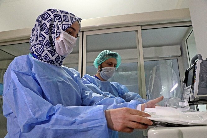 Tedbirlerin ardından hastaların bulunduğu özel izole odalarına giriş yapan doktor ve hemşireler, hastanın rahat nefes alabilmesi için akciğer temizliğini yapıyor. Sağlık çalışanları, tüm hastaların durum raporunun yer aldığı dijital ekrandan gözlerini ayırmıyor, en ufak alarm durumunda da hastaya müdahalede bulunuyor. Belirli aralıklarla yatış yönünü değiştirdikleri hastanın daha rahat nefes alabilmeleri sağlanırken, yine hastanın beslenmesinden temizliğine kadar tüm ihtiyacı sağlık çalışanları tarafından karşılanıyor.