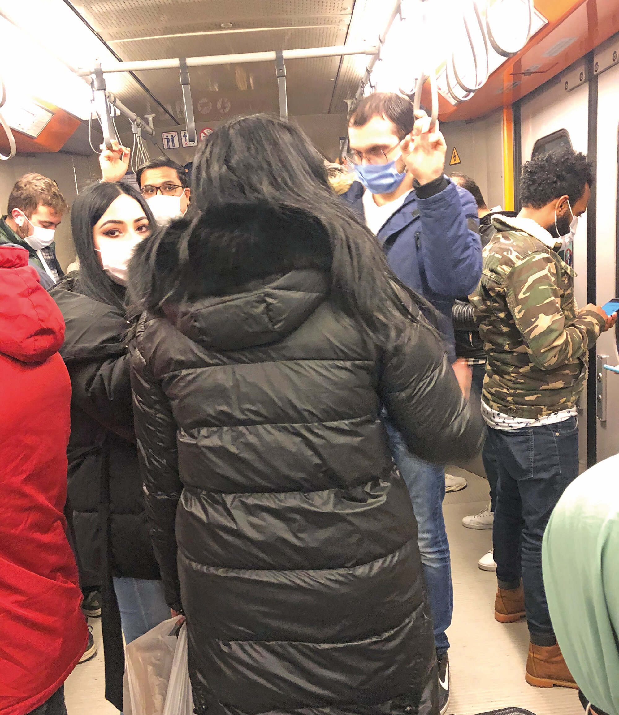 - Aksaray’a doğru yürümeye başlıyoruz. Sokaklar ve cadde 20.30’da hıncahınç dolu. Restoranların hepsi açık. Aksaray’daki kebapçıların önüne geliyoruz.Kebapçıların garsonları açık olduklarını ve içeride oturacak yerlerin bulunduğunu söylüyor. Sokağa çıkma yasağına 30 dakika kala Aksaray’daki parklar ve restoranların bir kısmı müşterilerle doluydu. Bakırköy’e gitmek için Aksaray’dan metroya biniyoruz.Ancak saat 20.45’de metro oldukça kalabalık. İncirli’de indikten sonra metro çıkışındaki tüm mekanlar kapalı.