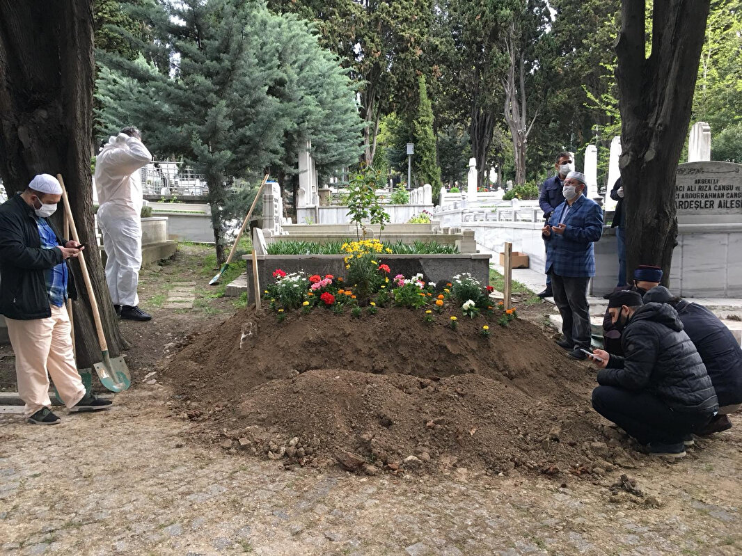 Cenazeye sınırlı sayıda kişinin katılımına izin verilirken, İstanbul Valisi Ali Yerlikaya'nın yanı sıra Ak Parti Milletvekilleri Mustafa Ataş, Mücahit Arslan, Eyüp Özsoy ve Ahmet Hamdi Çamlı ile Esenler Belediye Başkanı Mehmet Tevfik Göksu katıldı. Cenazeye katılanların sosyal mesafe kuralına dikkat ettikleri ve maske kullandıkları görülürken, defnedecek kişilerin koruyucu tulum giydikleri görüldü.
